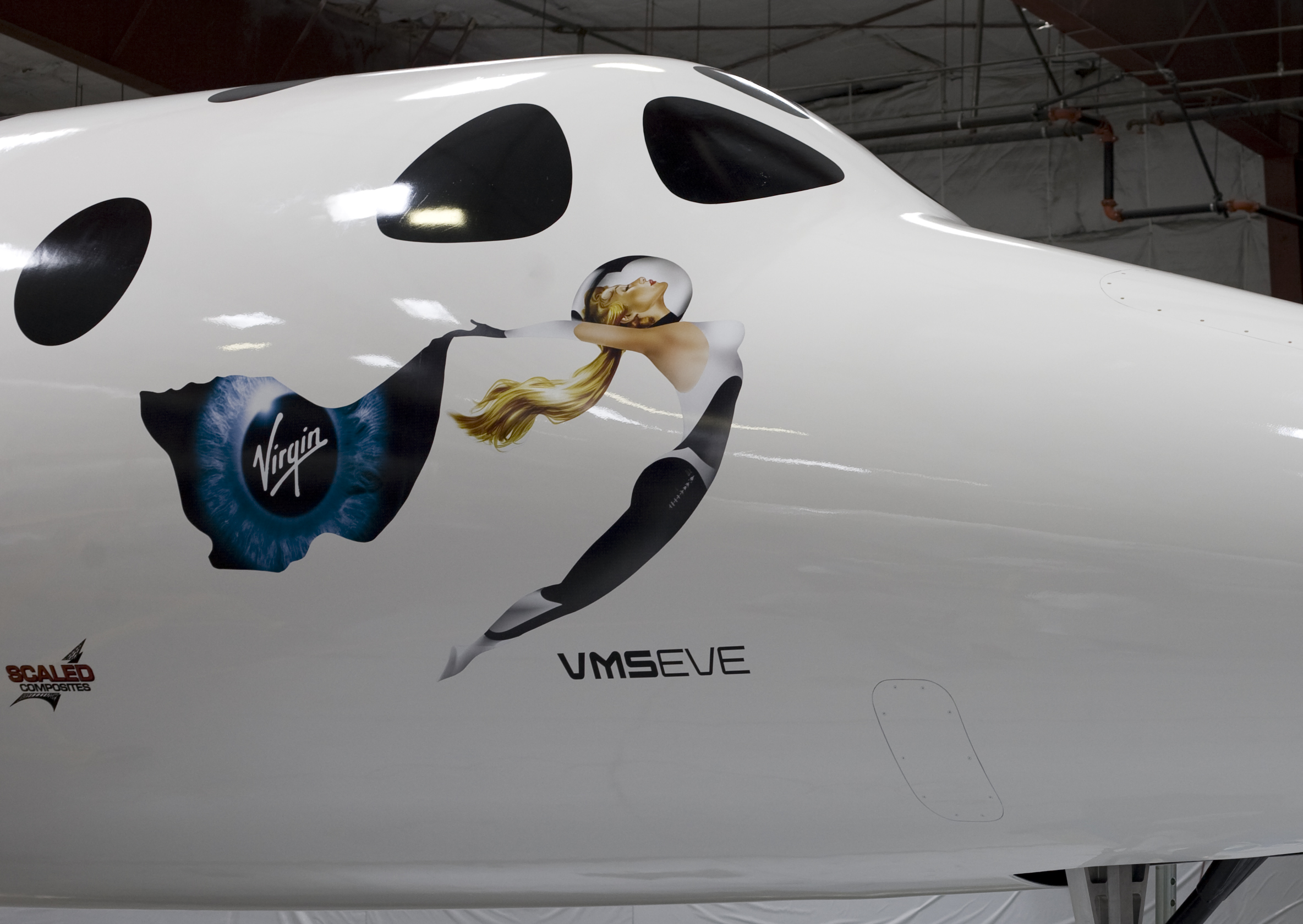 Branson’s mother officially christened the launch vehicle – it was named “Eve” after her, as well as symbolizing a new beginning for space exploration (let’s hope Apple stays well away from the computer systems). WhiteKnightTwo could also herald a new age in more traditional aviation, being the largest all carbon composite aircraft with the huge benefits in efficiency that promises.