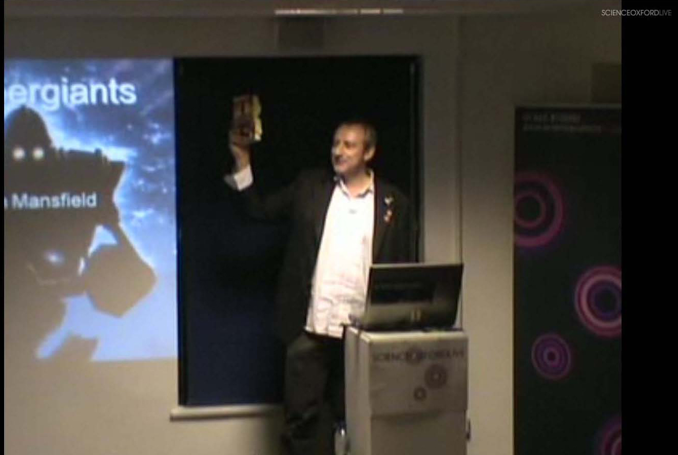 On Tuesday I gave my Starstuff & Supergiants talk at Science Oxford, as part of the Oxfordshire Science Festival. In a way it was a bit of the science behind the Johnny Mackintosh stories. I spoke about how the speed of light is a universal speed limit and time travel is (perhaps) a one-way street, and how the large hadron collider is a time machine (as well as everything else). I explained how stars are the atom factories of the universe and talked about the way stars die, sometimes in a supernova (what readers will realize the alien races of the galaxy call Star Blaze). Thanks to everyone at Science Oxford for giving me the opportunity, and to all those who came out on a Tuesday night to listen. If anyone missed it, there is no escape. The whole thing is available as a webcast from the Science Oxford site.