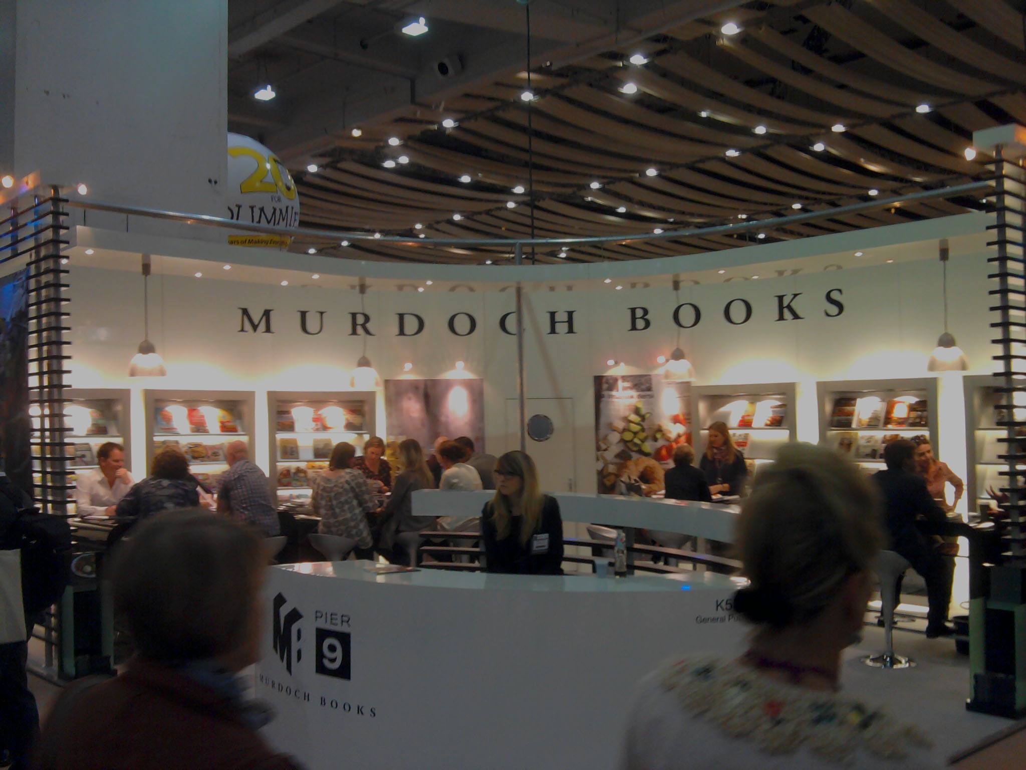 Around the fair, of course I made my way over to Quercus and found its two founders, Mark Smith and Wayne Davies, momentarily free of appointments – it’s always good to chat about Johnny Mackintosh with the bosses. As ever, the stand was buzzing and impressive. I also snapped Australia’s Murdoch Books, who distribute my titles down under.
